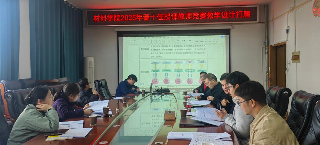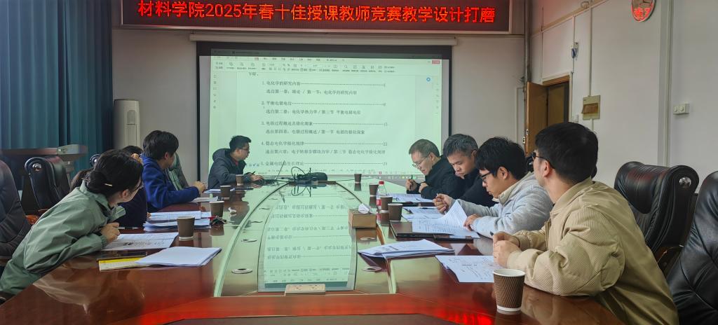 为进一步提升教师教学能力,助力参赛教师在十佳授课竞赛中展现最佳水平,材料科学与工程学院于3月12日在2308会议室举办“十佳授课教师竞赛教学设计专家打磨会”。会议特邀历届十佳授课教师组成指导团队,对参赛的3名教师进行“一对一”精细化指导,学院主管教学副院长黄孝华教授参会。 精准把脉,多维提升教学水平:打磨会上,3位参赛教师依次讲授参评的5个学时教学设计。专家团队从“教学设计、课程思政、课堂互动、技术融合”四大维度逐一点评。十佳授课教师获得者曹振博老师强调教学竞赛需兼顾学术深度与育人温度,要善于将专业知识点转化为启发性问题链;十佳授课教师获得者黄宏锋老师则针对竞赛评分标准,建议教师通过精准的学情分析设计教学梯度,运用信息化手段增强课堂张力;十佳授课教师获得者刘婵娟老师强调了融入课程思政元素的重要性。 学院教学副院长黄孝华教授在总结中指出,本次打磨会是学院“教学能力提升工程”的重要环节,后续将持续构建“培训-竞赛-反馈-改进”的闭环培养体系。强调材料学院教学竞赛要继续发扬“老带新、传帮带”的优良传统,也要取得既有传承,又有创新的作用和成效。 本次会议通过专家引领、同伴互鉴的深度研修模式,既为参赛教师厘清了备赛方向,也为学院教师搭建了教学交流平台,彰显了学院“以教学为本、以学生为中心”的育人理念。 图一 参赛教师姚迪圣试讲 图二 参赛教师田楠试讲 图三 参赛教师吕湘龙试讲 一审 徐瑞金 二审 黄孝华 三审 周焕福