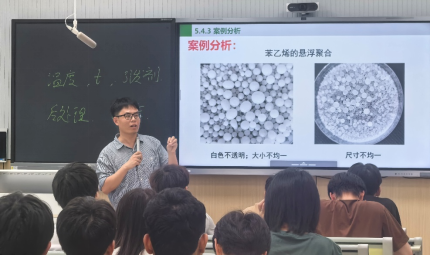 《高分子化学B》是高分子材料与工程专业的核心课,旨在培养学生在高分子合成与改性领域的核心素养和能力,也是学生进行工程实践和科研创新的基础。公开课伊始,曹老师以工程案例引入课程主题,在学生课前线上学习的基础上,利用视频深入浅出的讲解了核心机理,最后结合丰富的实践案例,实现了理论与实践的结合。课堂采用问题引导、互动问答、习题演练、小组讨论、观点分享及展示等多种方式,引导学生提出问题、分析问题、解决问题,充分激发了学生学习的积极性、主动性和创造性,课堂氛围活跃。课后,观摩教师一致认为此次授课内容丰富、条理清晰、重点突出、形式多样,体现了课程的高阶性、创新性和挑战度。