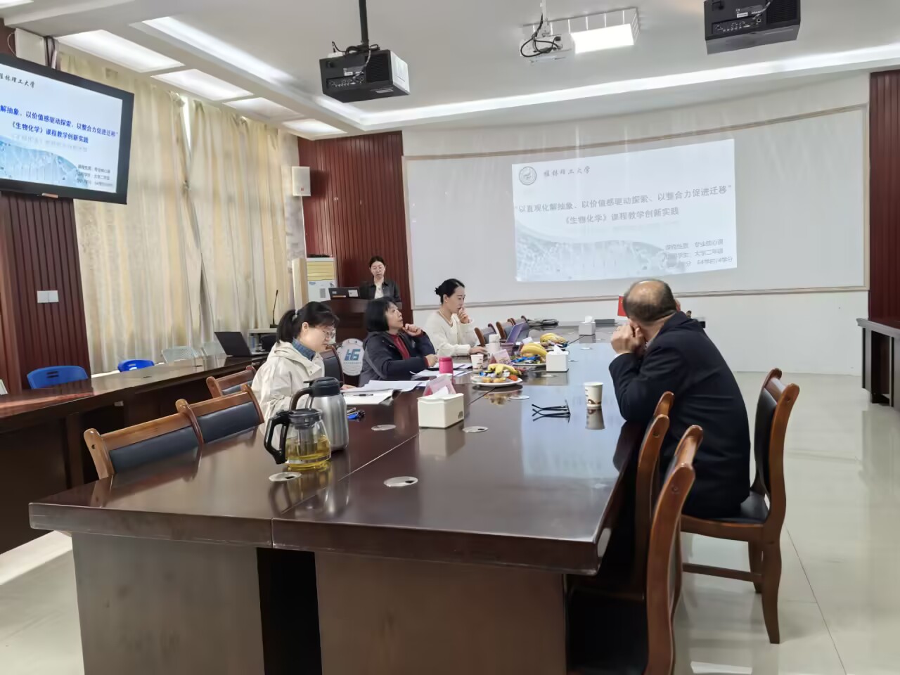 12月11日,桂林理工大学化学与生物工程学院第六届教师教学创新大赛院赛顺利举行。本次大赛以“激发教学创新活力,提升人才培养质量”为核心目标,为教师搭建了交流教学经验、展示创新成果的优质平台。 比赛设置基础课程赛道,采用“材料评审+现场汇报”的双重考核形式,全面考察教师的教学综合能力。生物工程教研室关媛副教授代表参赛,她紧扣专业特色,从教学内容重构、教学方法创新、现代技术融合三个维度进行系统设计,将生物化学知识内容与行业案例深度结合,同时巧妙融入课程思政元素,生动诠释了“以学生为中心”的教学理念,获得评委一致认可。 本次评审组由本科生院江晓云副院长、袁亚利和及方华老师共同组成。从教学设计逻辑性、课程思政融入度、创新成效实用性等多维度进行专业点评与精准指导。经评审团综合评议,关媛副教授凭借扎实的教学功底与突出的创新表现,成功获得学院推荐,将代表学院征战校级比赛。 本次大赛呈现出技术应用深入、学生主体凸显、内容贴合前沿等亮点,同时评委也针对部分教学环节中课程目标体现不足、创新案例支撑不够等问题提出改进建议。学院将以此次大赛为契机,持续推动教学改革,优化课程建设,为培养高素质创新人才筑牢教学根基。 评审现场 (一审:江燕 二审:袁亚利 三审:李霞)
